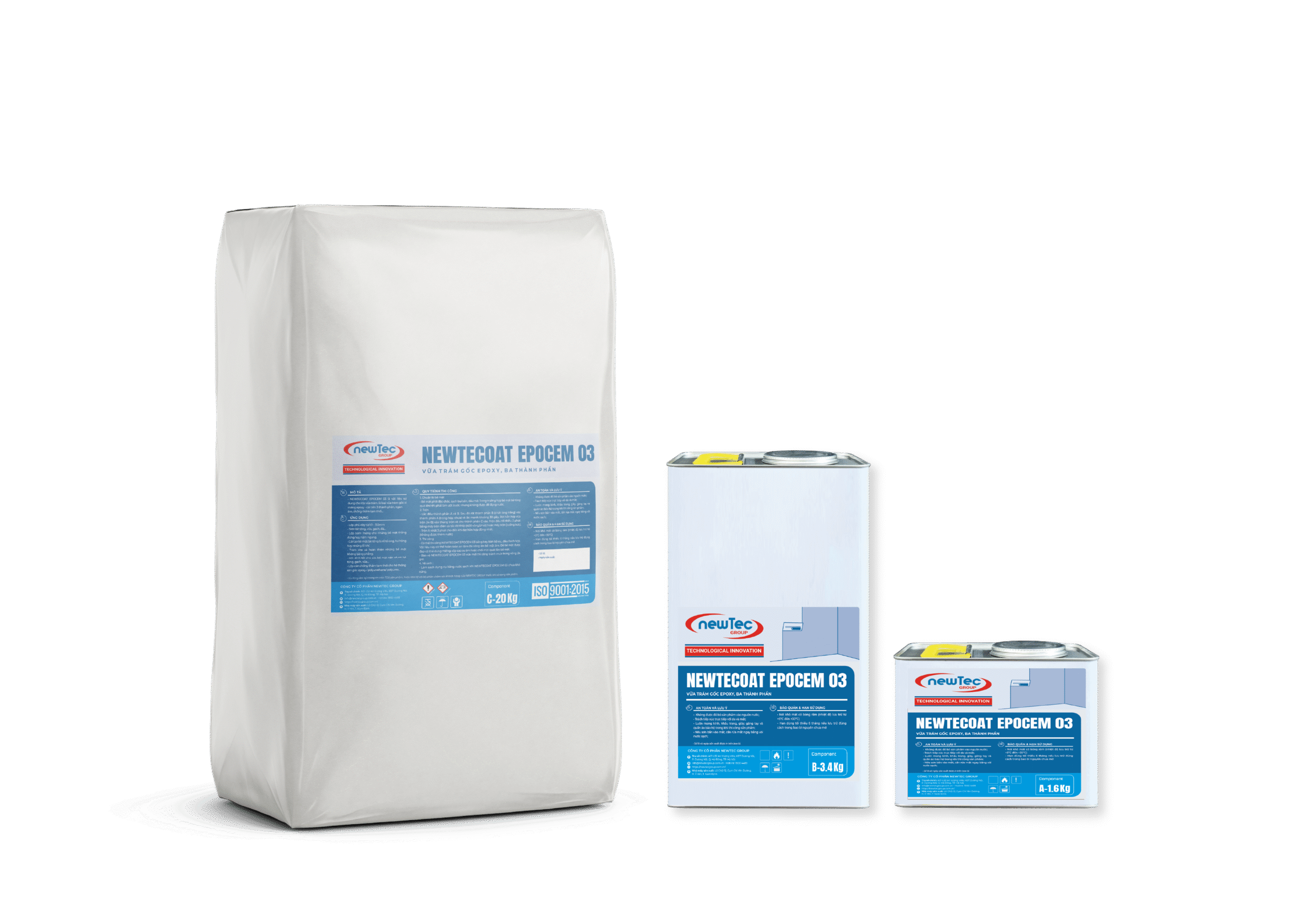 - NEWTECOAT EPOCEM 03 là vật liệu sử dụng cho lớp vữa trám, là loại vữa trám gốc xi măng epoxy – cải tiến 3 thành phần, ngăn ẩm, chống thấm tạm thời…