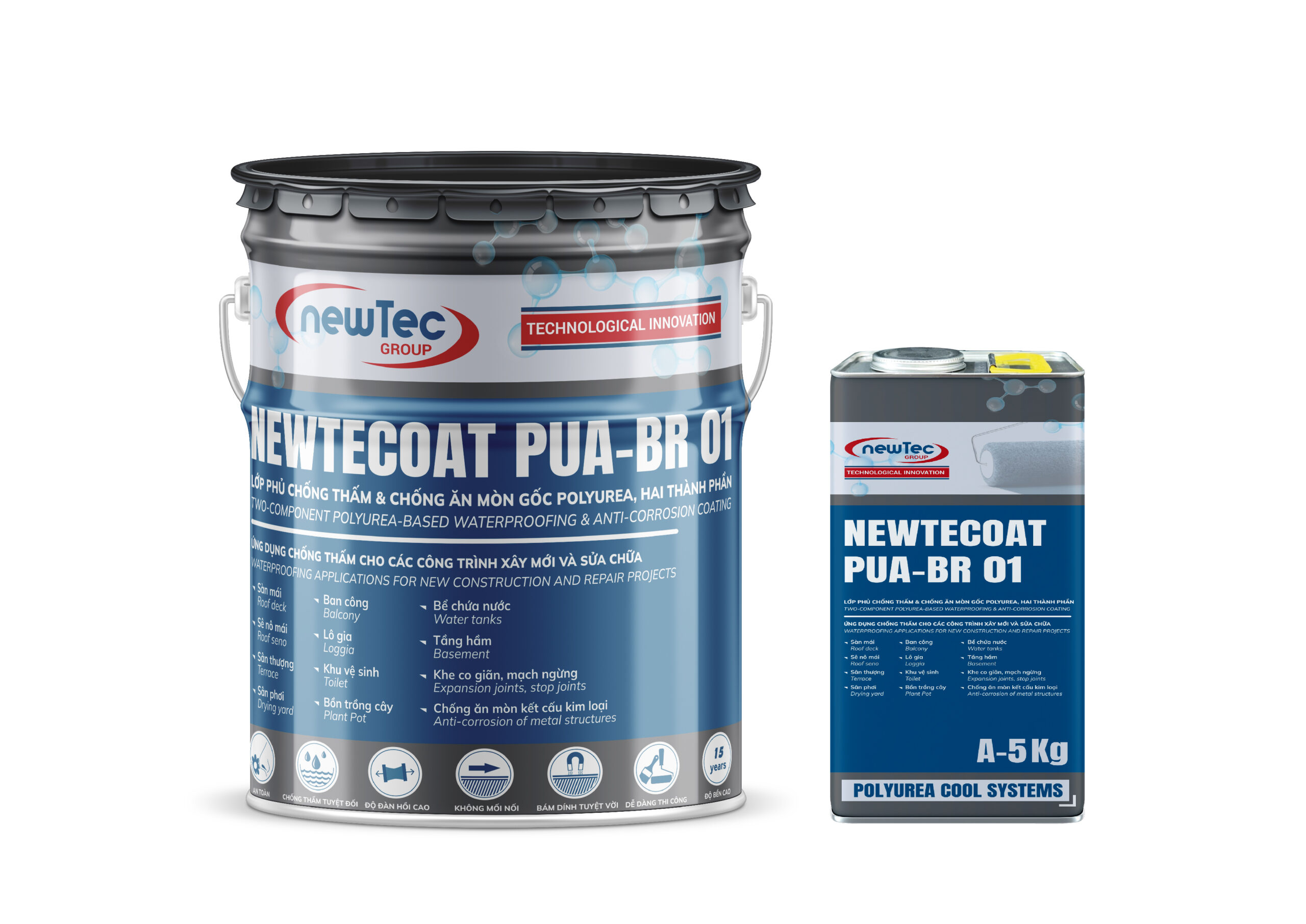 NEWTECOAT PUA-BR 01 tạo lớp phủ dẻo có cường độ cao sử dụng để chống thấm, chống mài mòn, chống ăn mòn biển, ăn mòn